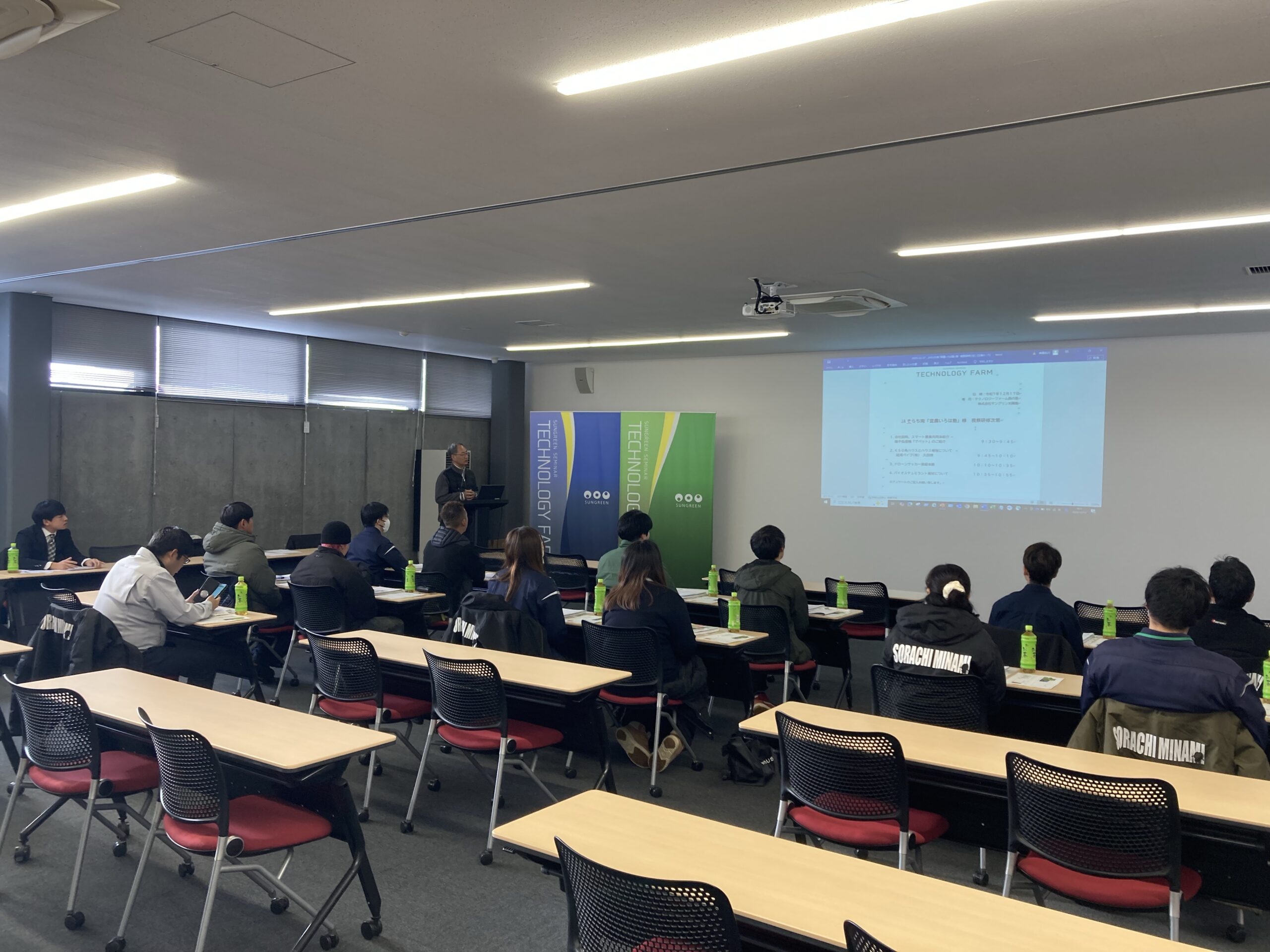 12月17日、協力会員のそらち南農業協同組合の組合員で組織される「営農いろは塾」の研修会が、正会員の株式会社北日本スカイテックが事業本部を置くTECHNOLOGY FARM 西の里で開かれました。