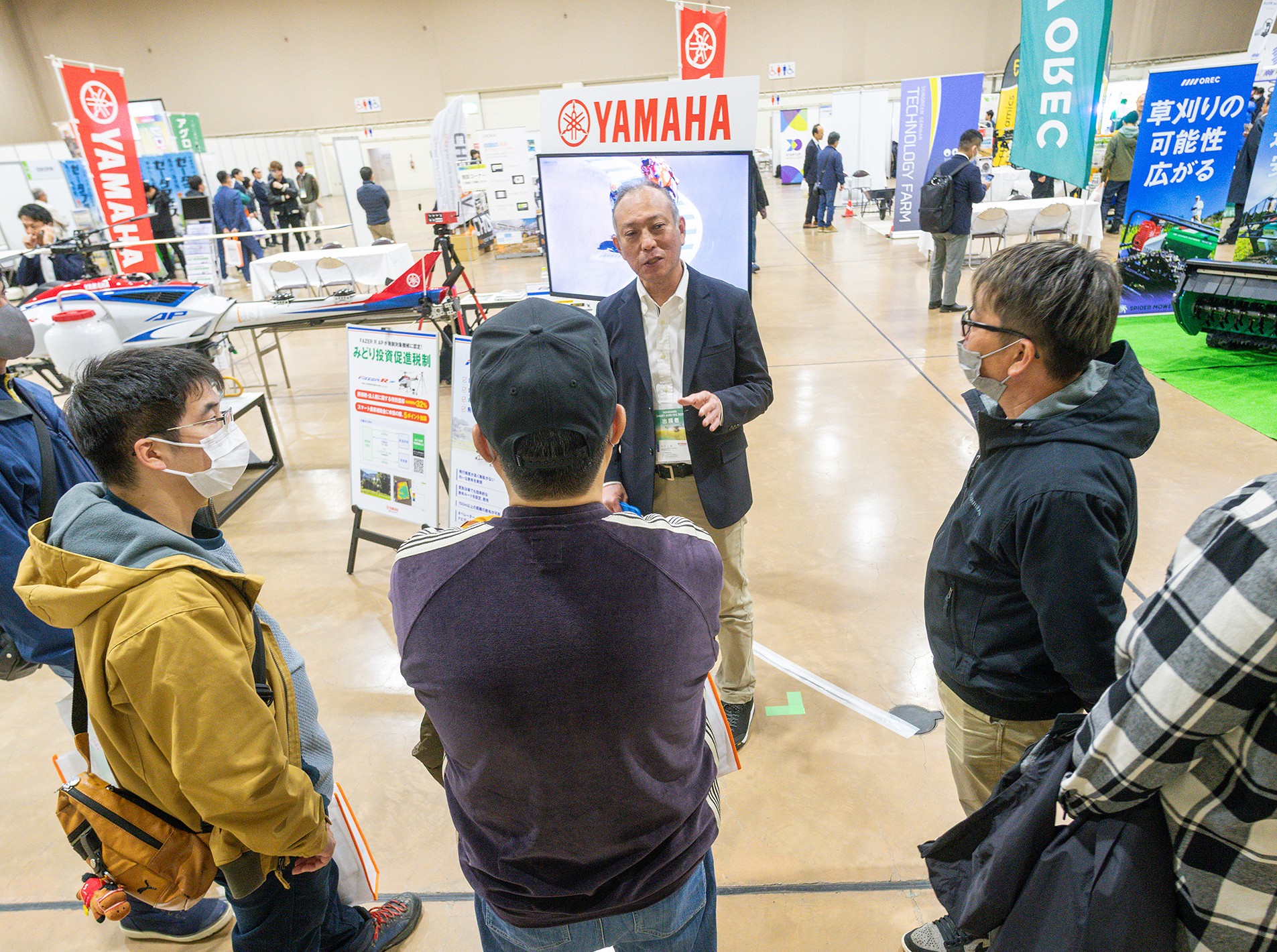 30年以上前に産業用無人ヘリコプターを世に送り出してから、散布現場とともに歩んできたヤマハ発動機。時代が求める自動飛行・自動散布を実現する「FAZER R AP」を展示しました。