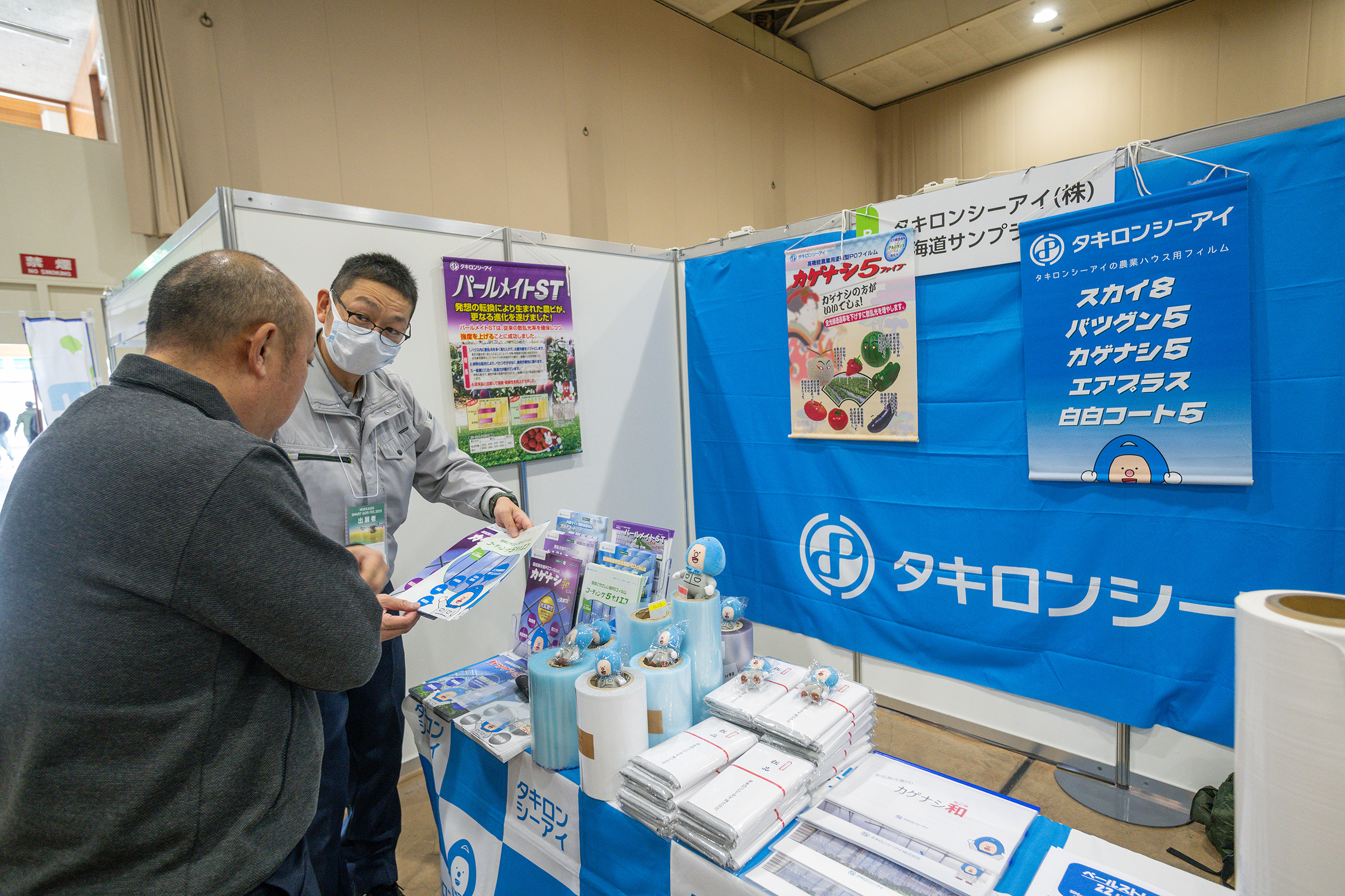 環境にやさしい汎用農POフィルム「コーティング5+1エコ」と、高拡散光農POフィルム「カゲナシ和」を展示しました。