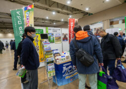 くん煙剤から無人航空機防除でも使える製品まで、多種類の自社製品を紹介しました。くん煙剤は、施設栽培において簡単作業でムラなく拡散できる省力的な防除法です。省力化が求められる昨今の農業において、作業が簡便なくん煙剤を来場者に提案していました。